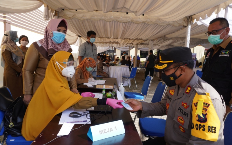 Pemerintah Kota Tebingtinggi melaksanakan Vaksinasi tahap pertama, Senin (8/2/2021) bertempat di Kantor Dinas Kesehatan Kota Tebingtinggi. Turut hadir Walikota Tebingtinggi Ir. H. Umar Zunaidi Hasibuan, MM, Ketua DPRD Basyaruddin Nasution, SH, Kapolres AKBP Agus Sugiyarso S.IK bersama Waka Polres Kompol Sarponi serta jajaran Polres Tebing Tinggi, Kabag Ops, Kabag Sumda, Kabag Ren, para Kasat, para Kapolsek, Sekdako Muhammad Dimiyathi, S.Sos, M.TP,