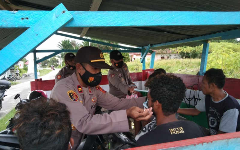 Polsek Piru, Polres Seram Bagian Barat, gencar melakukan operasi yustisi penertiban dan penerapan protokol kesehatan bagi warga yang tidak memakai masker saat beraktivtas di luar rumah,