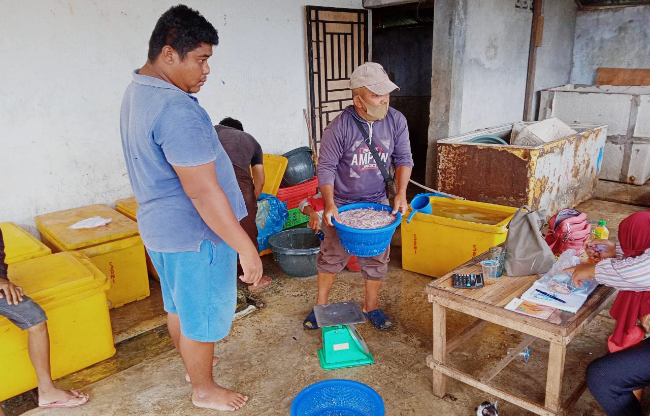 Buat pedagang ikan laut biasanya fokus nelayan, tetapi sekarang dengan keadaan cuaca sekarang ikan laut kurang, karena tidak ada nelayan yang nengah mencari ikan, Rabu (09/02/2022).