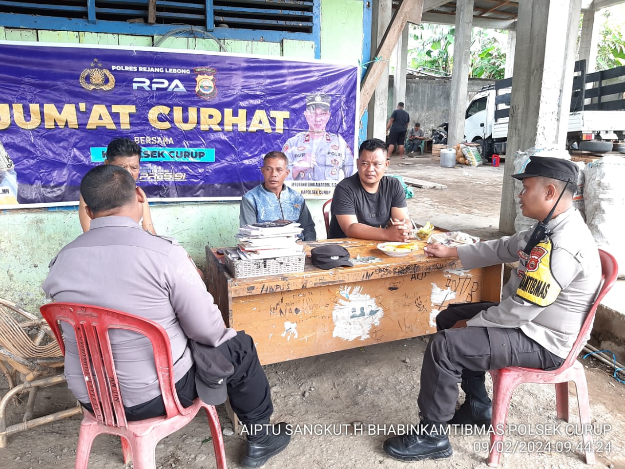 Kapolsek Curup Iptu Ibnu Sina Alfarobi,S.Sos Bersama Kanit Binmas beserta Bhabinkamtibmas Polsek Curup melaksanakan Kegiatan Jumat Curhat, Jumat, (09 Februari 2024).