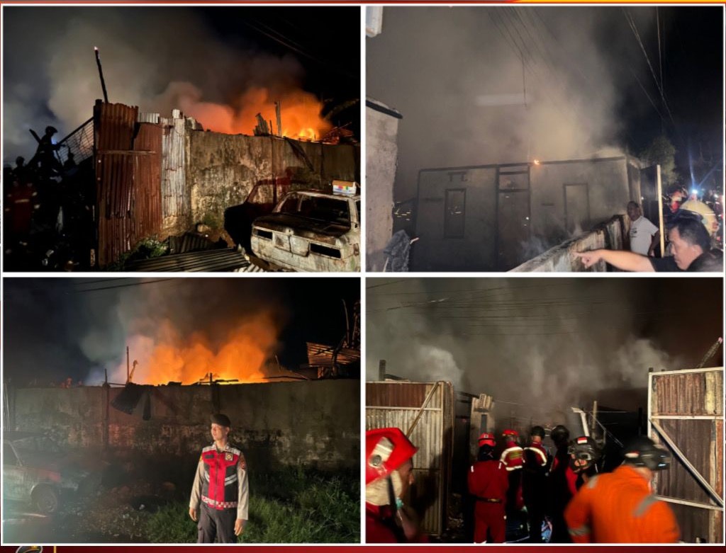 Bengkulu – Sat Intelkam Polresta Bengkulu Polda Bengkulu melaksanakan pengamanan dan olah Tempat Kejadian Perkara (TKP) kebakaran 2 (dua) unit Bangunan, rumah dan gudang barang barang bekas di Jalan Merawan Kelurahan Sawah Lebar Kecamatan Ratu Agung Kota Bengkulu, Kamis (08/02/2024) malam.