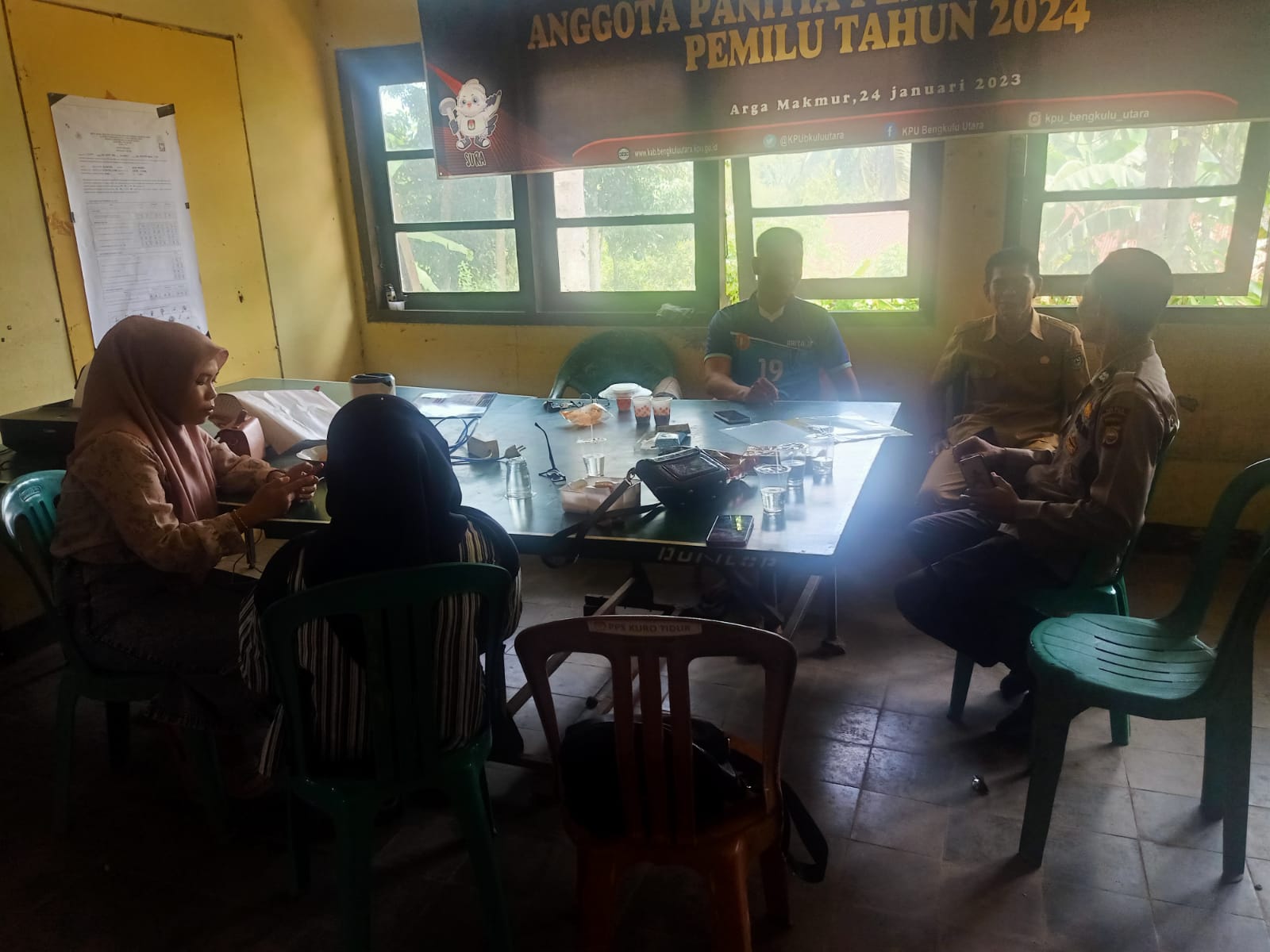 Bengkulu Utara – Subsatgas Preentif Satbinmas Polres Bengkulu Utara melaksanakan sambang untuk menjaga situasi kamtibmas menjelang pemungutan Suara Dan akan berakhirnya kampanye pemilu tahun 2024, personil Sat Binmas dalam hal ini Ps Kanit Bin tinsos Satbinmas Polres Bengkulu Utara AIPTU Solikin melaksanakan sambang dengan petugas  PPK Kecamatan Arga Makmur Kabupaten Bengkulu Utara pada hari Rabu tanggal 7 Februari 2024 pukul 10.30 wib.