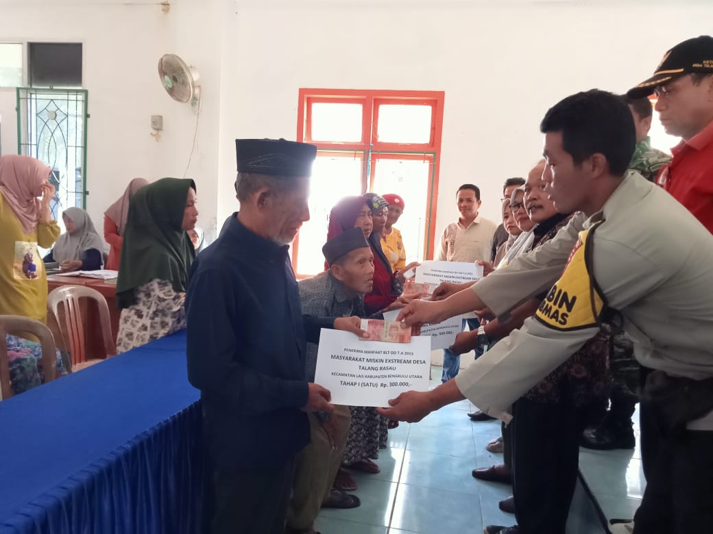 Bengkulu Utara – Bhabinkamtibmas Polsek Lais Polres Bengkulu Utara Polda Bengkulu, Aipda Beta Netra pada hari Jumat (7/4/2023) siang, menghadiri acara penyaluran BLT DD Tahun Anggaran 2023 Desa Talang Rasau Kecamatan Lais Kabupaten Bengkulu Utara.