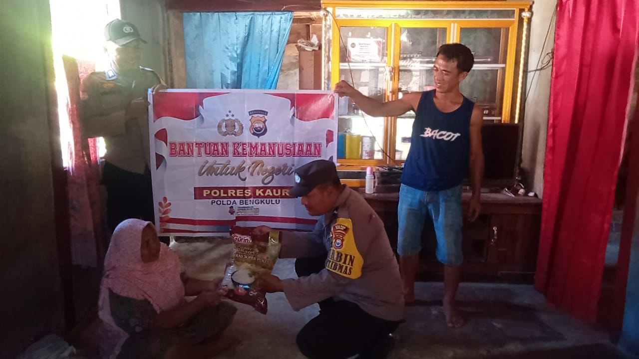 Kaur – Polsek Kaur Tengah, Polres Kaur Polda Bengkulu kembali menyalurkan bantuan sosial kepada warga kurang mampu dan atau yang membutuhkan, Minggu (9/4/2023)/