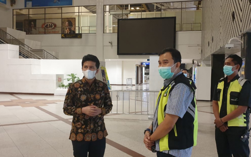 Wakil Gubernur Jawa Timur Emil Elestianto Dardak melakukan peninjauan dan pengecekan situasi di Bandara Internasional Juanda, Surabaya, Jawa Timur, Pada Kamis,06 Mei 2021.