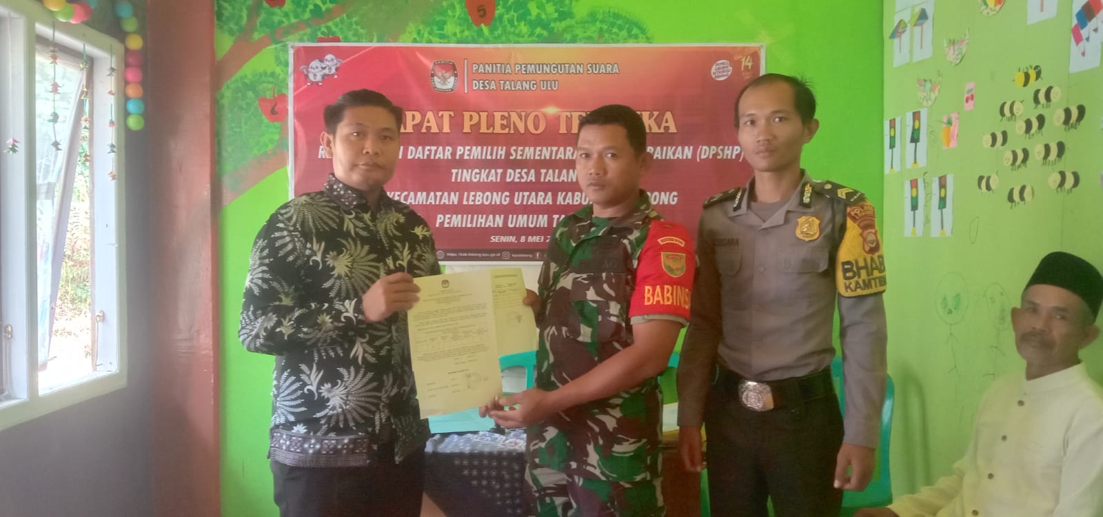 Lebong – Bhabinkamtibmas Polsek Lebong Utara Polres Lebong Polda Bengkulu Briptu Cindra Sugara, menghadiri kegiatan Rapat Pleno Terbuka Rekapitulasi Daftar Pemilu Sementara Hasil Perbaikan (DPSHP) Desa Talang Ulu, Kecamatan Lebong Utara Kabupaten Lebong, Senin (8/5/2023).