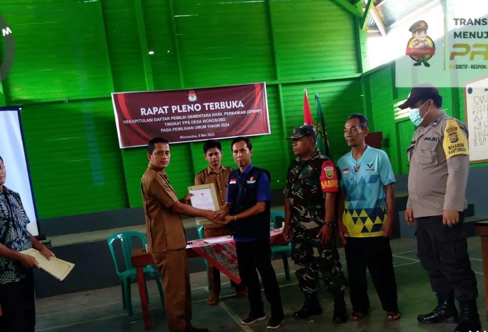 Mukomuko – Rapat Pleno Terbuka Rekapitulasi Daftar Pemilih Hasil Pemutakhiran (DPHP) Pada Pemilu Th 2024 dihadiri oleh Polsek Penarik Raya Polres Muko Muko Polda bengkulu, Pada hari Senin, 08 Mei 2023. Giat tersebut dilakukan di Balai Desa Wonosobo Kec.penarik Kab. Mukomuko yang dihadiri oleh – Kades Wonosobo yang di wakili oleh Bhabinkamtibmas, Babinsa, Ketua BPD, Ketua PPS, Tim Pengawas, Pantarlih serta Tamu Undangan.