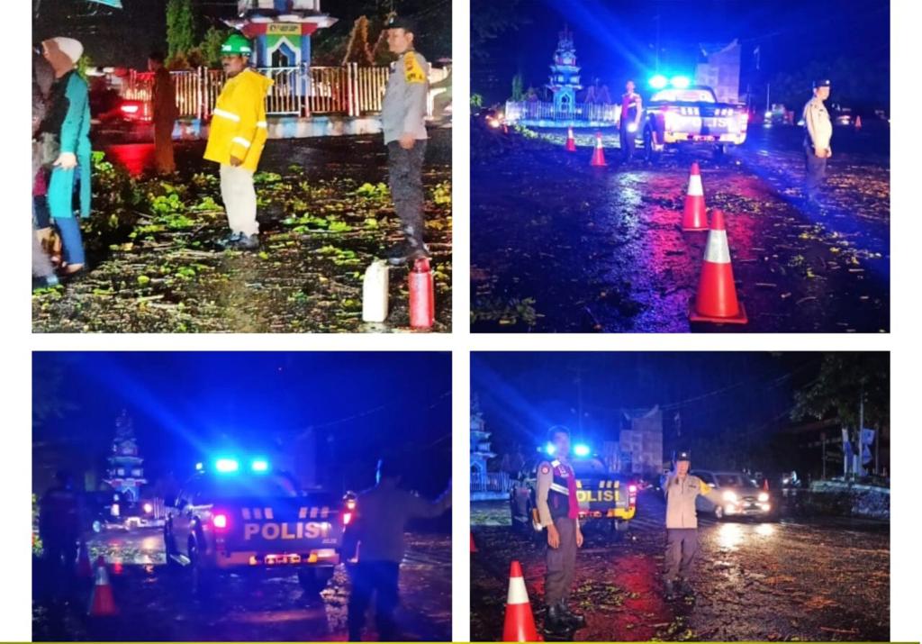 Bengkulu – Setelah terjadinya angin kencang yang melanda Kota Bengkulu dan sekitarnya pada Senin Sore (08/05/2023) yang mengakibatkan pohon tumbang di ruas jalan, Sat Samapta Polresta Bengkulu Polda Bengkulu melakukan Patroli dan mendatangi TKP pohon tumbang di Jalan Basuki Rahmat dan Jalan Danau, Senin (08/05/2023) malam.