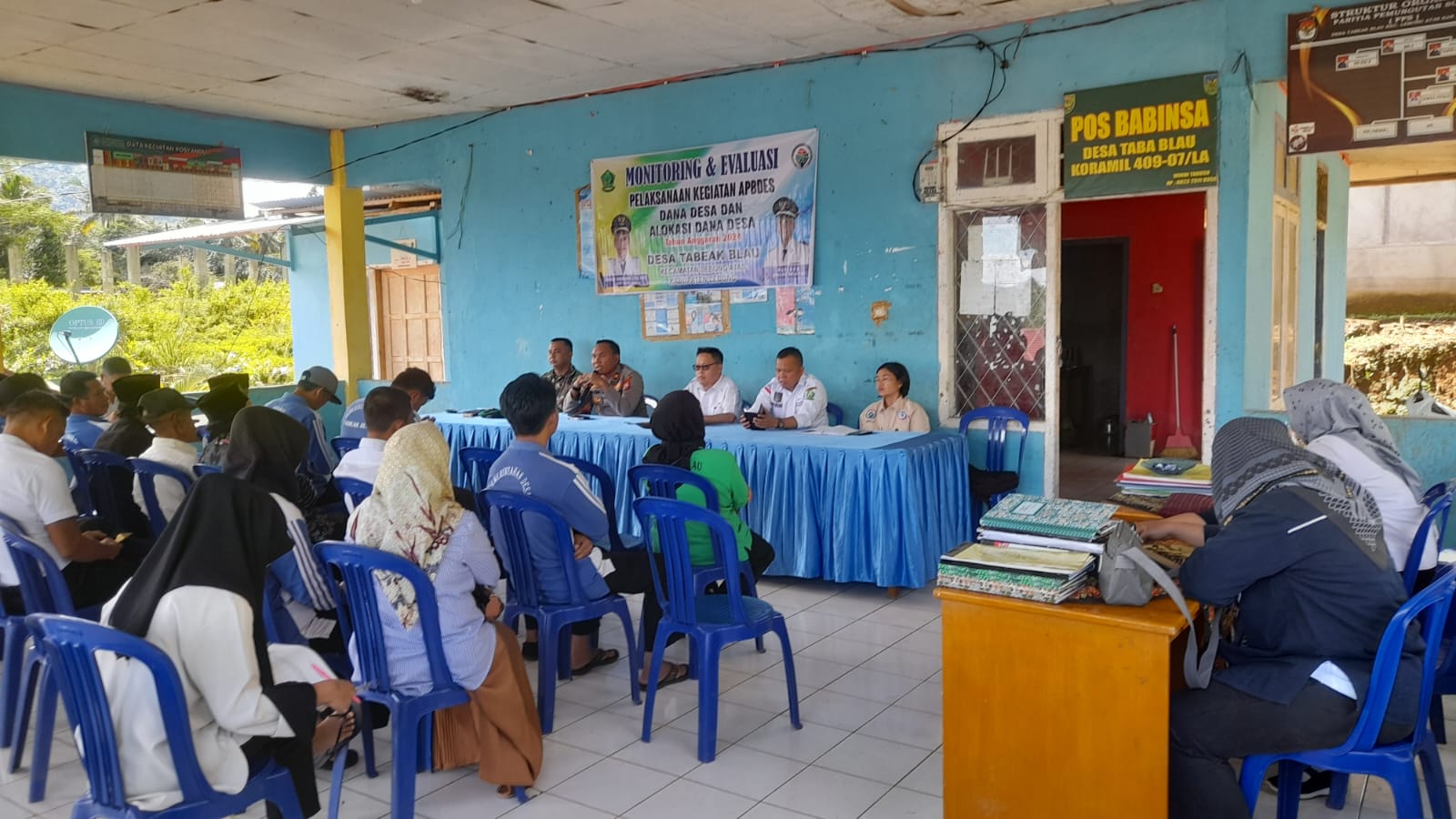Lebong – Kapolsek Lebong Atas Polres Lebong Polda Bengkulu, Iptu Nur Huda, didampingi Bhabinkamtibmas Polsek Lebong Atas Bripka Raden Syahbana, menghadiri Monev di Desa Tabeak Blau Kecamatan Lebong Atas, Kabupaten Lebong, Rabu (8/5/2024).