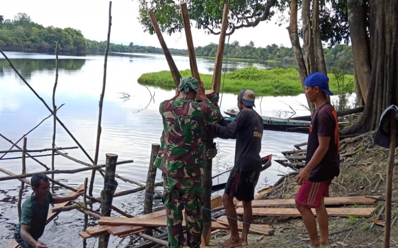 Untuk meningkatkan sistem keamanan di masyarakat Bintara Pembina Desa (Babinsa) Koramil 1206 – 01/Embaloh Hilir, Praka Junaidin melaksanakan Komunikasi Sosial (Komsos) dengan tokoh masyarakat dan mengaktifkan kegiatan pos kamling, serta mengajak warga binaannya membuat pos Pengamanan di lingkungan Danau Bungkang, Desa Nanga Embaloh , Kecamatan Embaloh Hilir, Kabupaten Kapuas Hulu, Senin (07/06/2021).