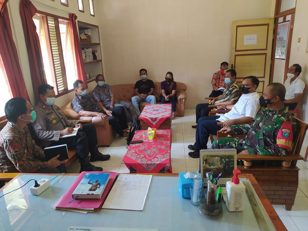 Landak – Danramil 1201-06/Menjalin, Peltu Suparlan bersama Muspika melaksanakan komunikasi sosial (Komsos) dengan Tokoh Agama (Toga) dan Tokoh Masyarakat (Tomas) di aula Kantor Camat Menjalin, Kabupaten Landak, Selasa (8/6/2021).