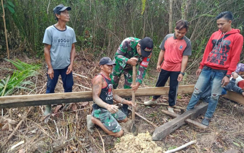 Sebagai wujud kebersamaan dan meningkatkan kerja sama di wilayah binaan, Babinsa Koramil 1206-05/Embaloh Hulu membantu warga binaannya dalam membangun rumah di Kampung Ulak Pauk, Kecamatan Embaloh Hulu, Kabupaten Kapuas Hulu, Senin (07/06/21).