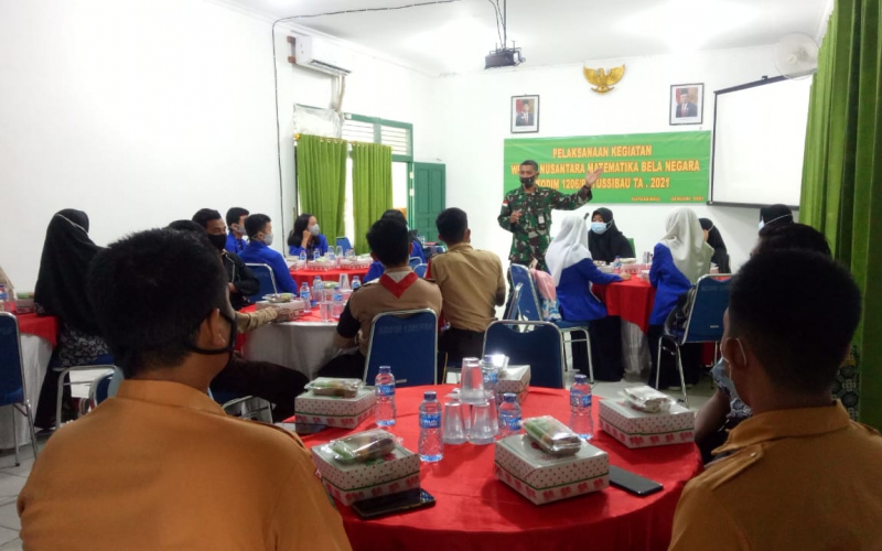 Kodim 1206/Psb Pusat menggelar kegiatan wawasan kebangsaan (Wasbang) dengan metode Wisata Matematika Bela Negara di Lapangan Makodim 1206/Psb. Senin (07/06/21)