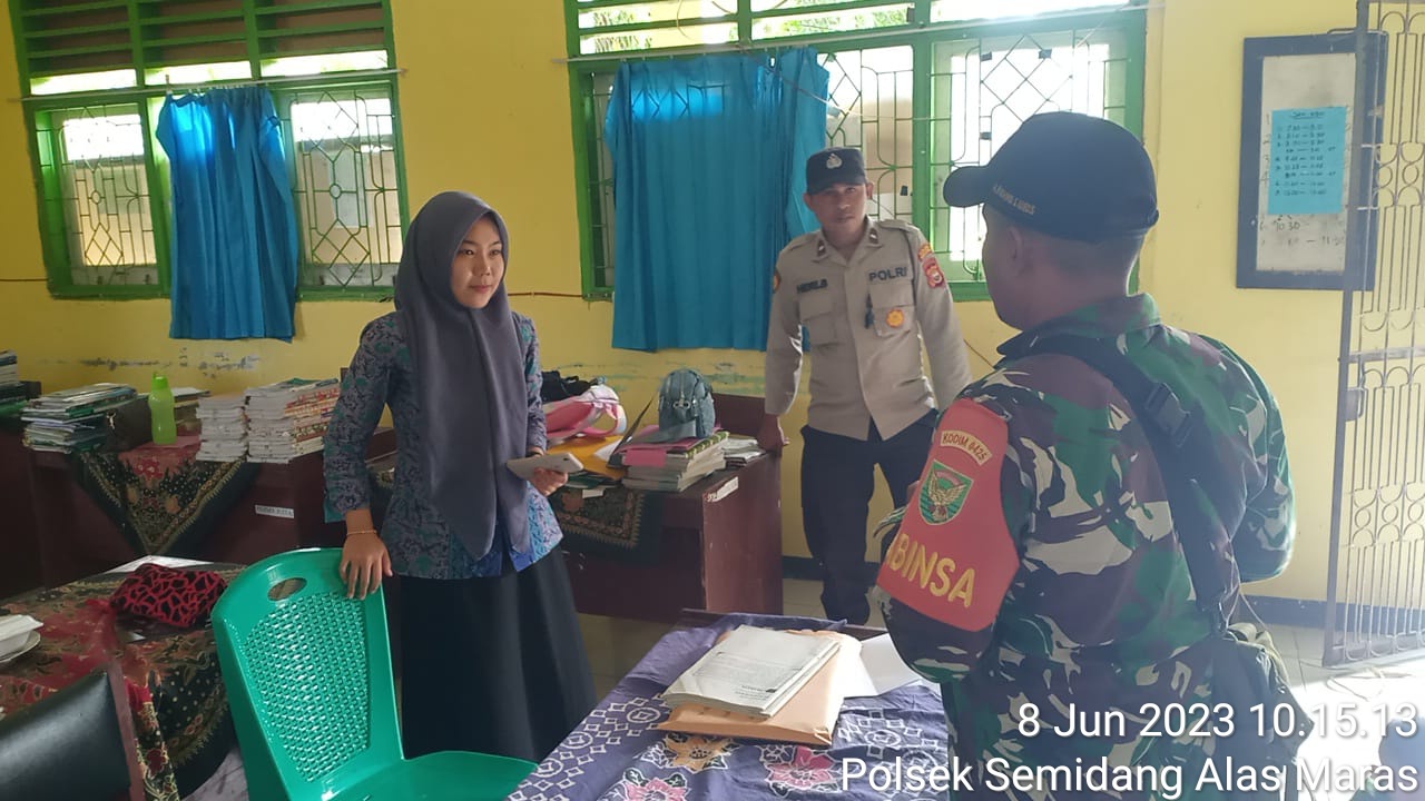 Seluma – Personel Polsek Semidang Alas Maras (SAM) Polres Seluma Polda Bengkulu, bersama personel Koramil 425-04 Semidang Alas Maras, kompak melaksanakan patroli bersama guna monitoring pelaksanaan pengumuman kelulusan siswa-siswi SMP diwilayah hukum Polsek Semidang Alas Maras, Kamis (8/6/2023).