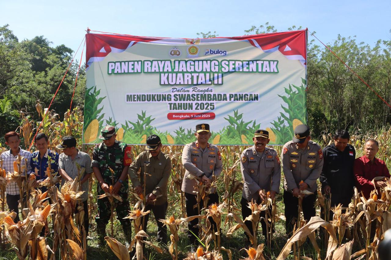 Kepahiang – Dalam rangka mendukung program ketahanan pangan nasional yang merupakan bagian dari Asta Cita Presiden RI, Polres Kepahiang kembali menggelar Panen Raya Jagung Serentak Kuartal II. Kegiatan ini berlangsung di lahan Mako Polsek Bermani Ilir, pada Kamis (5/6/2025).
