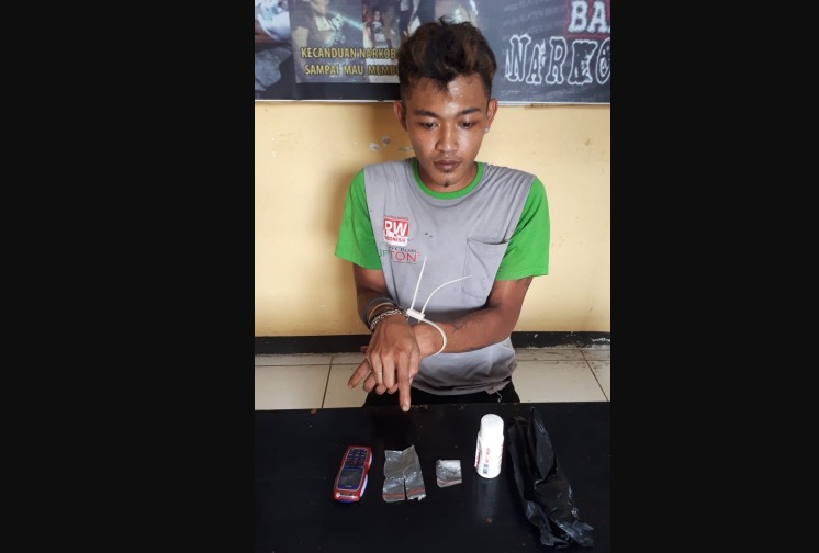 Bengkulu, Siberindo.co – NA (22), pria warga Desa Marga Sakti Kecamatan Padang Jaya Kabupaten Bengkulu Utara, ditangkap petugas unit Narkoba Polres Bengkulu Utara Polda Bengkulu saat melintas di jalan Simpang Jenggot Desa Kuro Tidur Kecamatan Arga Makmur Kabupaten Bengkulu Utara pada, Sabtu (8/8/2020) siang, sekira pukul 13.00 WIB.