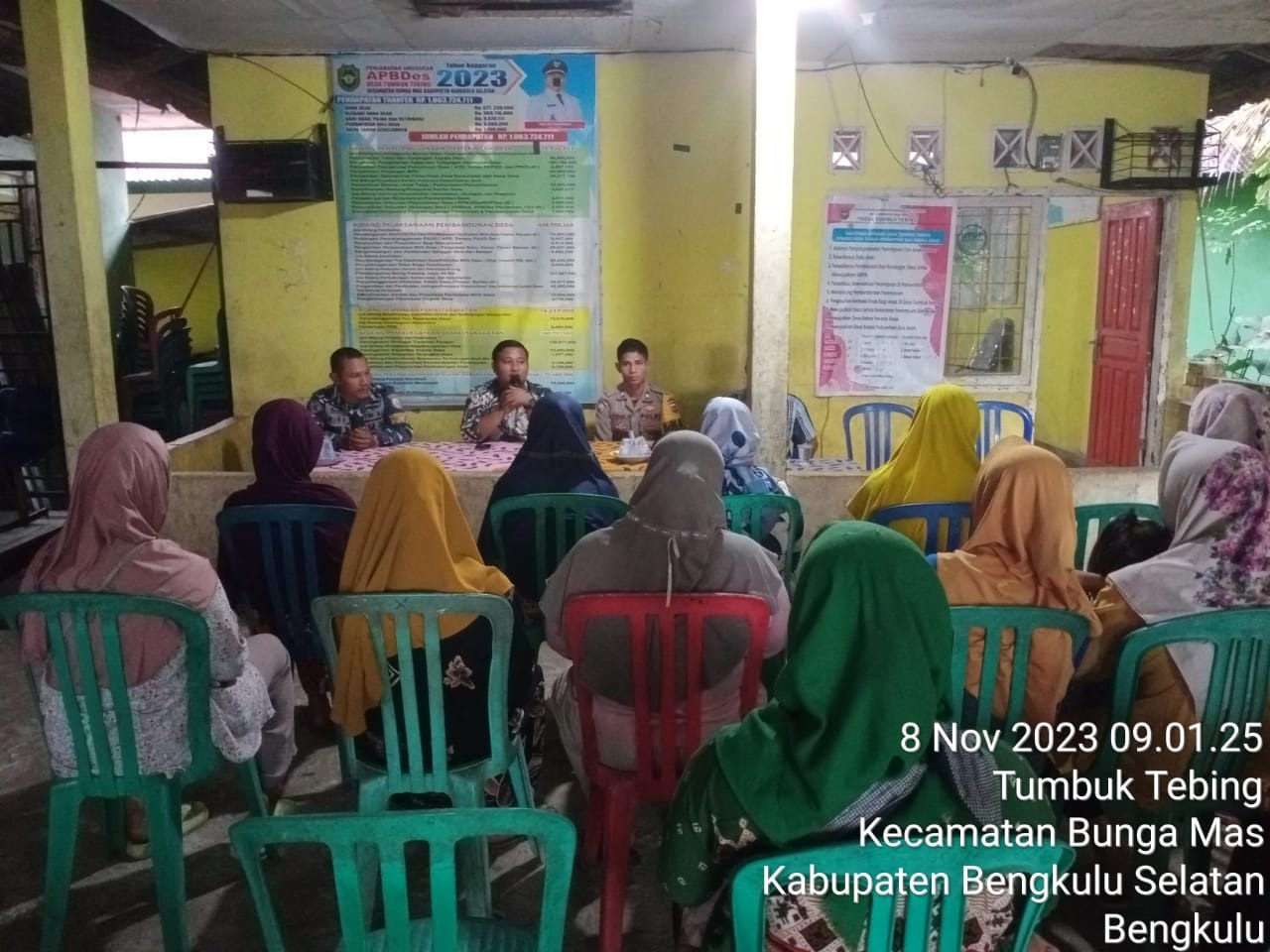 MANNA Medhub.News Humas Polres Bengkulu Selatan, Kamis (09/11/23) – Polsek Manna Polres Bengkulu Selatan Polda Bengkulu, Bhabinkamtibmas Polsek Manna Briptu Yogi Pramana menghadiri kegiatan Penyaluran BLT-DD Di Desa Tumbuk Tebing kecamatan Bunga Mas Kabupaten Bengkulu Selatan, Rabu (08/11/23).