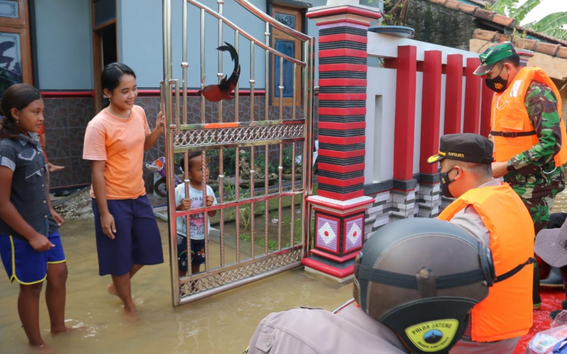 Sambil memberikan motivasi kepada korban banjir, Pimpinan TNI dan Polri di Kabupaten Pati tersebut juga menyampaikan himbauan protokol kesehatan agar tetap memakai masker untuk pencegahan penularan Covid-19.
