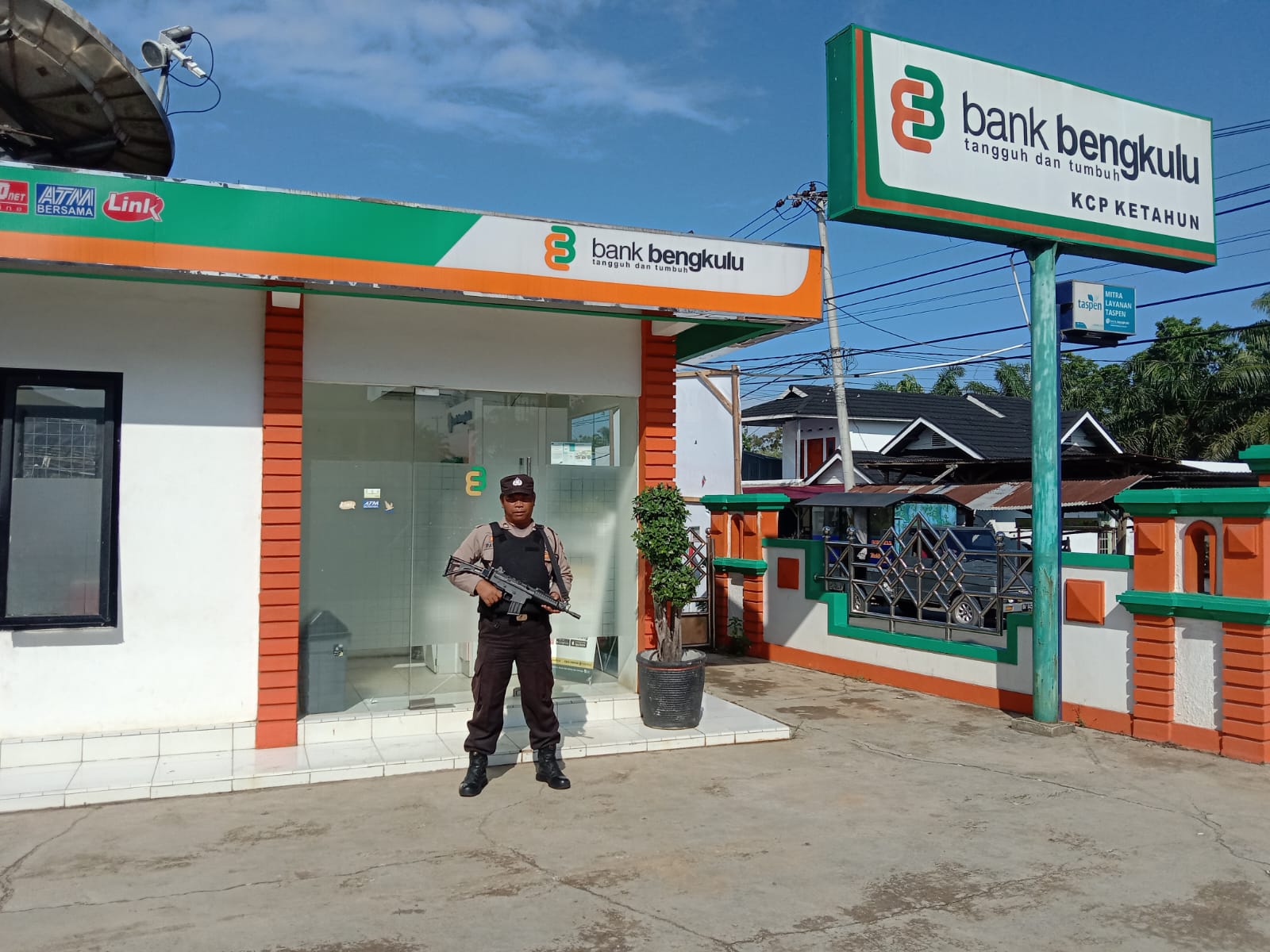 Bengkulu Utara – Anggota Polsek Ketahun melaksanakan pengamanan obyek vital pada yang ditugaskan untuk melaksanakan pengamanan di Bank dan ATM Bank Bengkulu Jumat (09/02/2024).