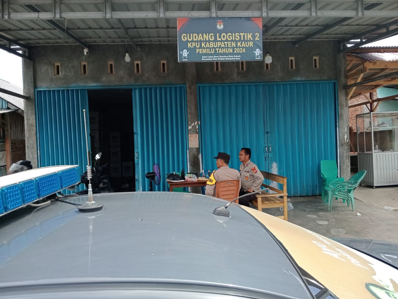 Melaksanakan patroli ke gudang logistik 1, 2 dan 3 menghimbau kepada pengawas logistik dan yang ngepam logistik untuk berhati hati dan waspada karena logistik sangat rawan jangan sampai terjadi hal hal yang tidak di ingin kan dan juga mengingat kan agar mengecek instalasi listrik dan air ujan jangan sampai plapon atau ada air yang masuk ke gudang sehingga merusak kotak suara dan yang lain lain nya mengingat sudah mendekati hari pencoblosan. Apabila ada kendala agar menghubungi Polsek Kaur selatan atau Polres Kaur.