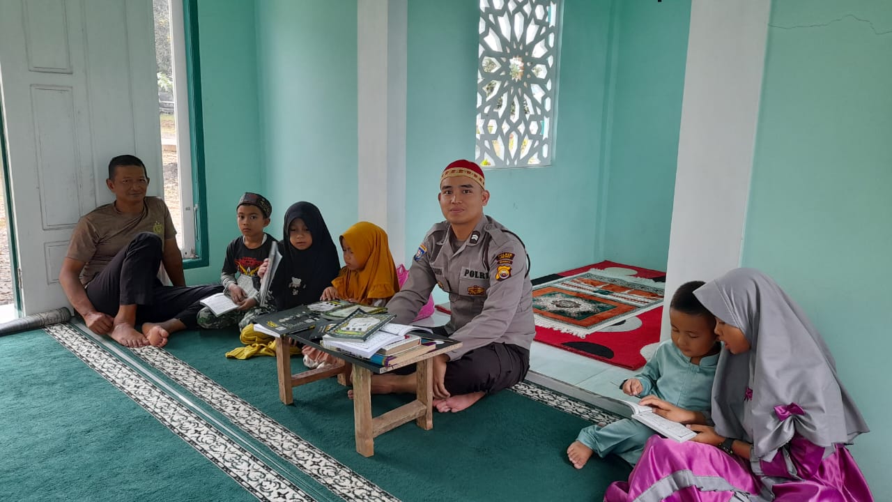 Lebong – Bhabinkamtibmas Polsek Lebong Atas Polres Lebong Polda Bengkulu, Briptu Waas Sab, mengajar ngaji anak-anak di Desa Tabeak Blau I dan Desa Daneu, Kecamatan Lebong Atas Kabupaten Lebong, Sabtu (9/3/2024).