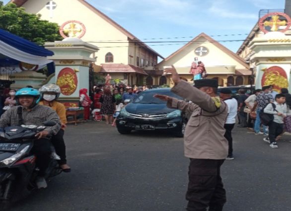 Bengkulu – Jajaran Kepolisian Resor Kota Bengkulu Polda Bengkulu, melaksanakan Pengamanan dan Monitoring rangkaian Ibadah Paskah Tahun 2023 yang dilaksanakan umat Nasrani di gereja yang tersebar di wilayah Kota Bengkulu, Minggu (9/04/2023).