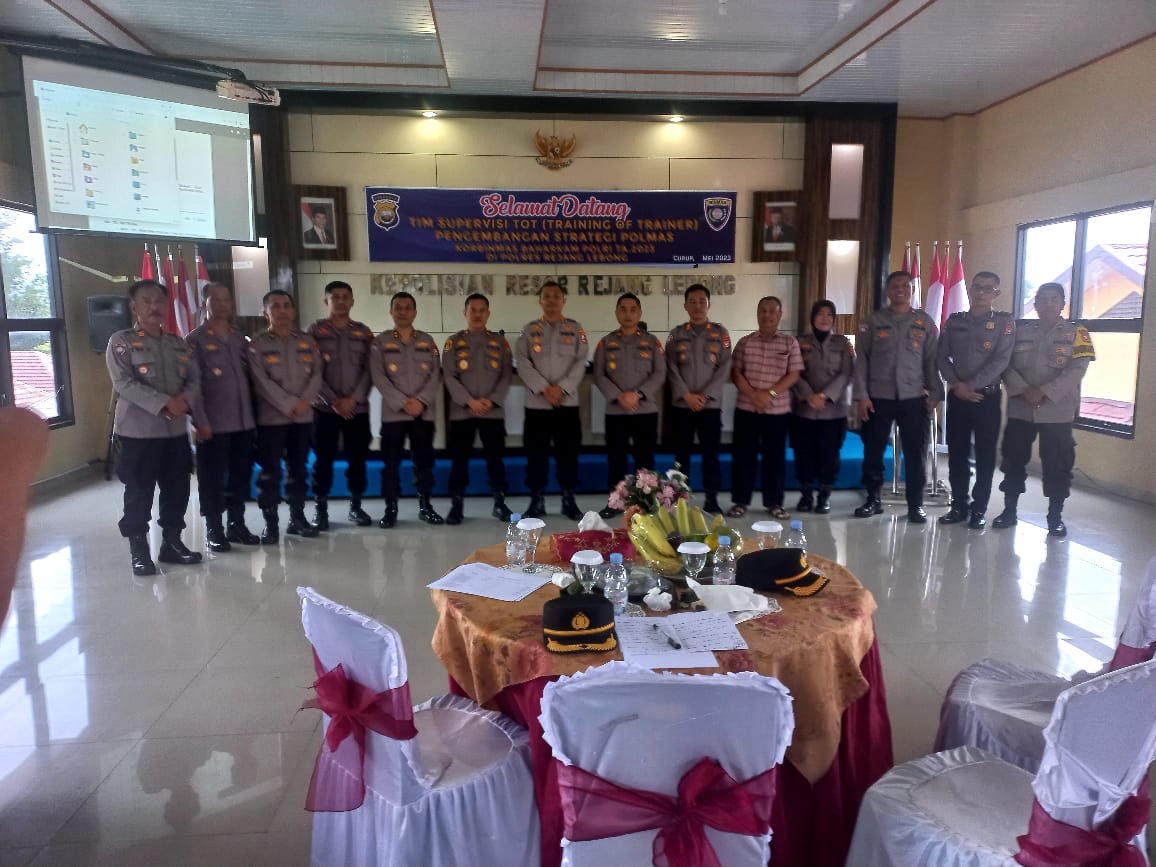 Rejang Lebong – Wakapolres Rejang Lebong dan Kasat Binmas pada Kamis (4/5/2023), mengikuti kegiatan Supervisi TOT (Trainning Of Trainer ) Pengembangan Strategi Polmas.
