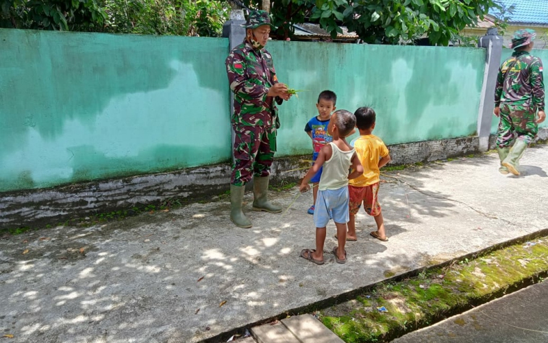 Begitu juga dengan yang dirasakan oleh anak-anak , sangat senang dengan melihat kehadiran TNI Praka Zulfiqor salah satu babinsa  Koramil 1206/Psb yang menyempatkan untuk menyambangi rumah warga tersebut, tanpa mengenal takut bahkan mereka merasa seperti sudah kenal lama, tampak akrab, dan asyik diajak ngobrol.