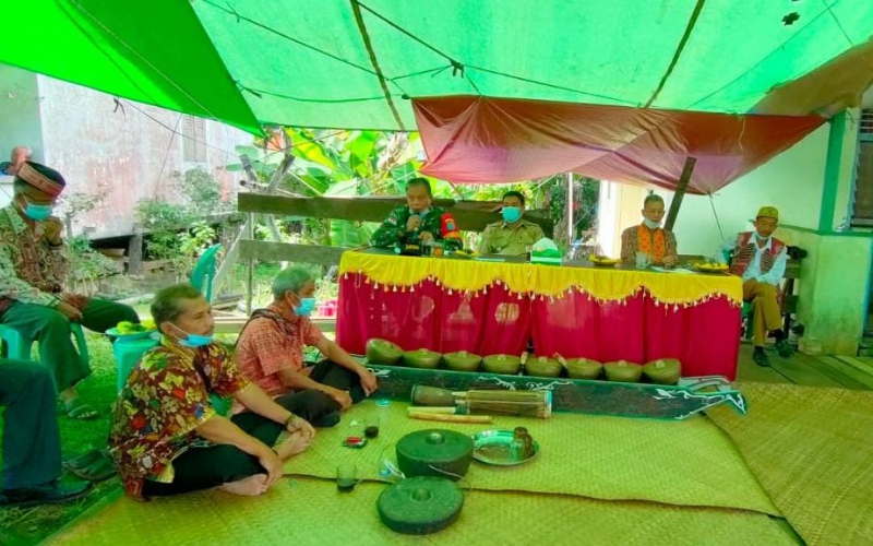 Danramil 1206 – 07/Empanang menghadiri Pelantikan Patih/Kepala Adat Desa Nanga Kantuk di Kediaman Bpk Yohanes Bulin, Dusun Kampung Baru, Desa Nanga Kantuk, Kecamatan Empanang, Kabupaten Kapuas Hulu, Selasa (08/06/2021).
