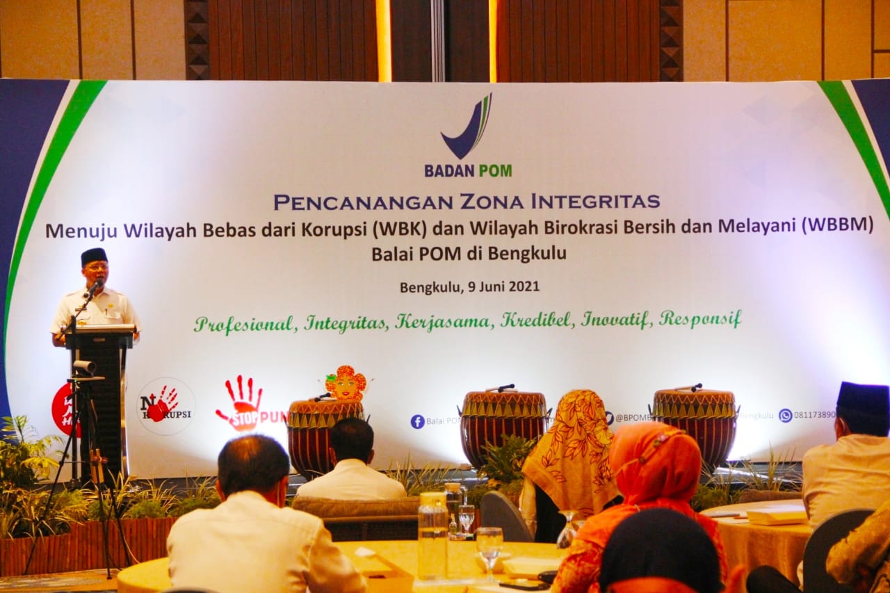 Hal tersebut diungkapkan Gubernur Bengkulu Rohidin Mersyah usai memberikan sambutan pada Pencanangan Zona Integritas Menuju Wilayah Bebas Korupsi (WBK) dan Wilayah Birokrasi Bersih Melayani (WBBM) Balai Pengawasan Obat dan Makanan (BPOM) Provinsi Bengkulu, di ruang pertemuan salah satu Hotel di kawasan Padang Jati Kota Bengkulu, Rabu (09/062021).