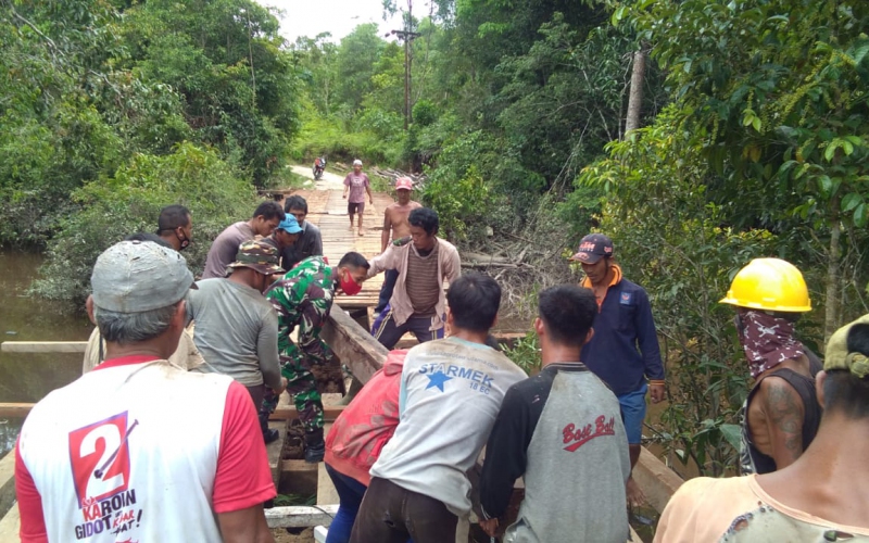Berkomitmen terus hadir  ditengah -tengah masyarakat Babinsa Koramil 1206-02/Semitau, Praka Alexander hadir, bersama-sama masyarakat dalam Bergotong royong dalam perbaikan Jembatan penghubung Antara Dusun Asun dengan Dusun Arum Manis,Desa Semitau Hulu, Kecamatan Semitau, Kabupaten Kapuas Hulu, Rabu (09/06/2021).