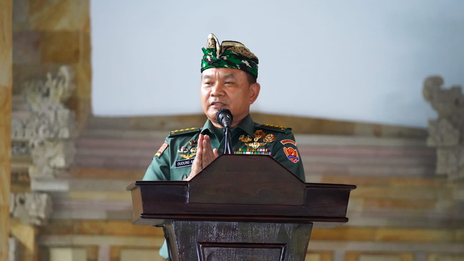 Dalam sambutannya, Kepala Staf Angkatan Darat (Kasad) Jenderal TNI Dudung Abdurahman, S.E., M.M., menyampaikan bahwa, TNI AD tidak akan mentolerir segala macam kekeliruan yang dapat mengganggu persatuan dan kesatuan. Ini yang perlu dijaga umat Hindu dengan bahu membahu bersama umat lainnya untuk menjaga keharmonisan, kedamaian, ketenteraman dan keselamatan, serta menjaga generasi ke depan.