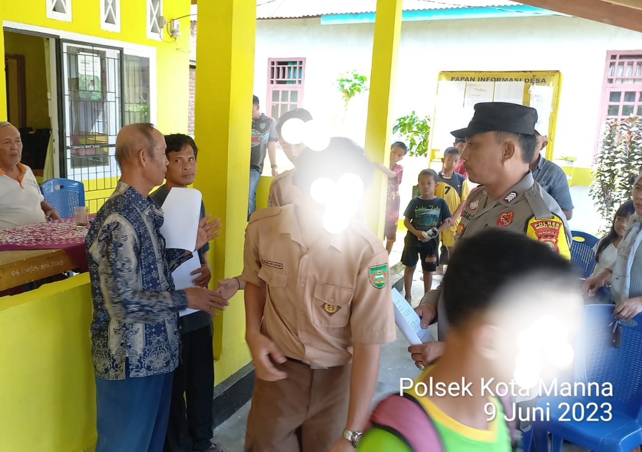 Kapolres Bengkulu Selatan AKBP Florentus Situngkir S.I.K.,melalui Kapolsek Kota Manna Iptu Sasi Raharto, S.H., mengatakan sebagai ujung tombak di kewilayahan Bhabinkamtibmas harus berperan aktif di wilayah binaannya masing-masing dan saya selalu menekankan kepada para Bhabinkamtibmas agar lebih dekat dengan masyarakat dan apabila ada suatu permasalahan warga binaannya segera lakukan problem solving untuk menemukan solusi dan jalan tengahnya, ini merupakan salah satu tugas Bhabinkamtibmas.