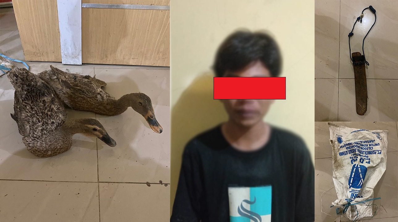 “Barang bukti yang kita amankan diantaranya 2 ekor bebek, 1 unit sepeda motor Suzuki Shogun, 1 buah sarung parang, dan 1 lembar karung,” kata Kasat Reskrim.