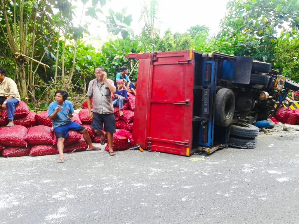 “Memang benar tadi sekira pukul 15.30 WIB telah terjadi kecelakaan tunggal, Saat ini mobil Truck nopol BD 8151 AW telah diamankan, untuk pengandara tidak mengalami luka-luka dan kernet mengalami luka robek kaki kiri,” kata Kasatlantas.