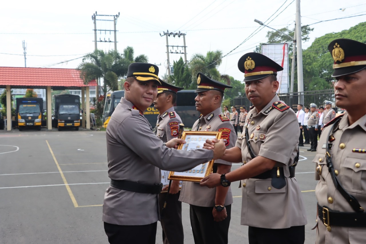 Kota Bengkulu – Jumat, (09/08/2024), Upacara Serah Terima Jabatan 4 PJU yakni Kasat Intelkam, Kasat Binmas, Kapolsek Kampung Melayu dan Ka KSKP Polresta Bengkulu, pukul 08.00 wib s-d selesai, bertempat di Lapangan Apel Polresta Bengkulu.