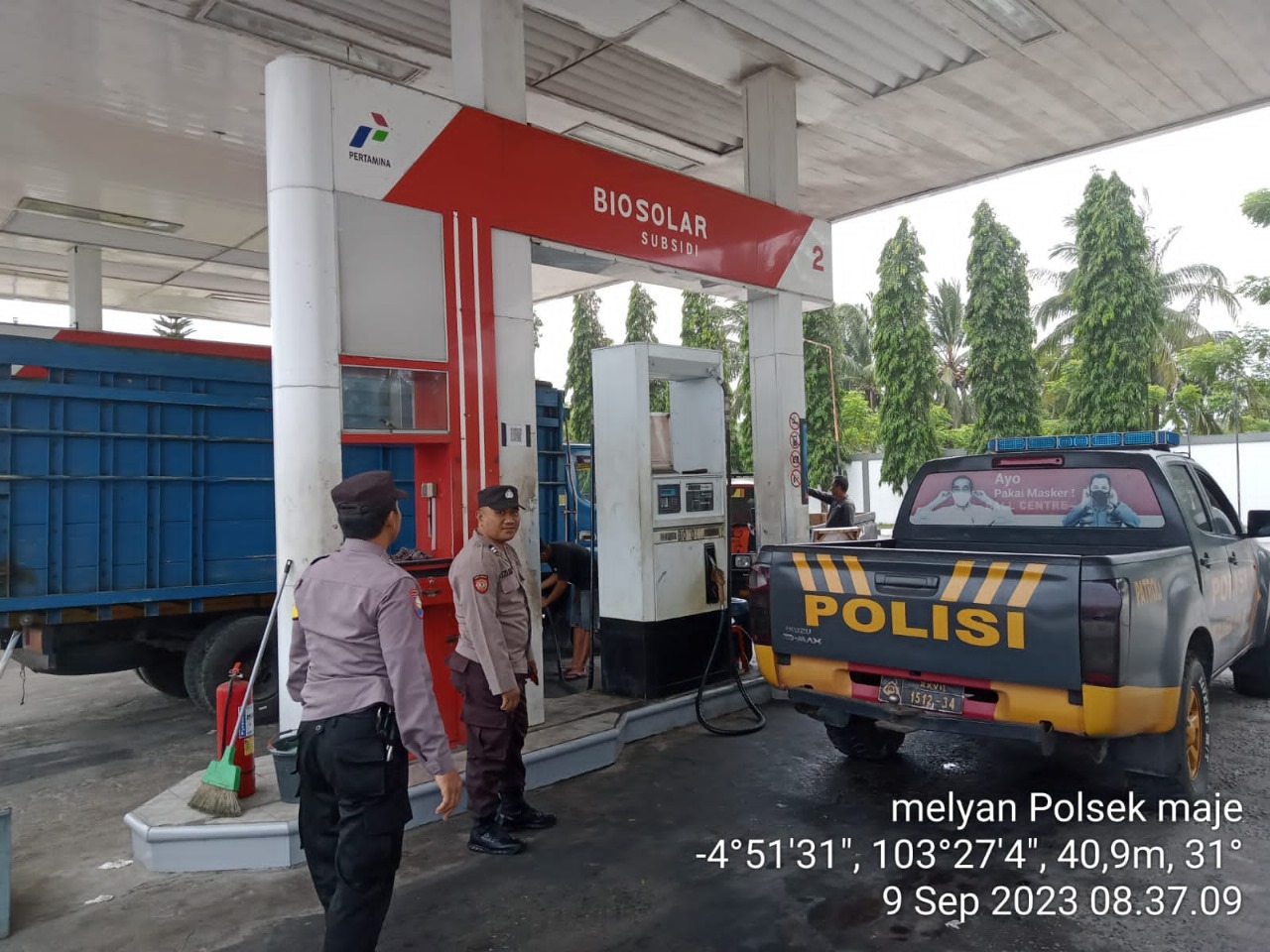 Kaur – Polsek Maje Polres Kaur Polda Bengkulu, melakukan pengamanan dan pengawasan di SPBU Air Numan Jaya Desa Suka Menanti Kecamtan Maje Kabupaten Kaur terkait Pendistribusian/Pengisian BBM terutama Jenis Pertalite dan Bio Solar, Sabtu(09/09/2023).