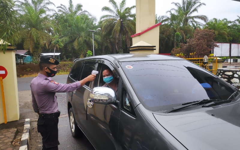 Tetap konsisten, Polres Mukomuko terus menerapkan pelaksanaan pemeriksaan prokes (protokol kesehatan) terhadap siapapun yang akan memasuki lingkungan kantor Polres Mukomuko Polda Bengkulu.