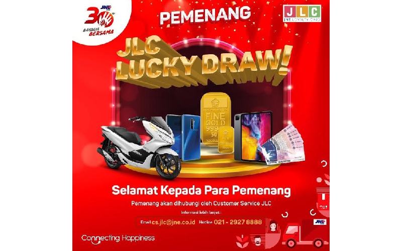 Semangat “Connecting Happiness” yang selalu diusung oleh JNE hingga di usia 30 tahun ini, memberikan berbagai makna dalam setiap langkah maupun strategi untuk terus berbagi kebahagiaan khususnya kepada pelanggan. Hal ini diwujudkan dalam berbagai program apresiasi, salah satunya melalui JNE Loyalty Card (JLC). JLC merupakan sebuah wadah bagi pelanggan loyal JNE, dimana di dalamnya disediakan berbagai kemudahan dan benefit dari setiap transaksi yang dilakukan oleh pelanggan.