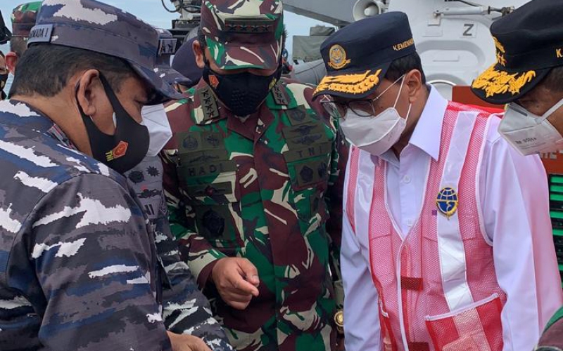 Panglima TNI Marsekal TNI Hadi Tjahjanto, Menteri Perhubungan Budi Karya Sumadi, dan Kabasarnas Marsdya Bagus Puruhito bertolak dari Posko Terpadu JICT 2 menuju lokasi dugaan kuat pesawat Sriwijaya SJ182 jatuh di antara Pulau Lancang dan Pulau Laki, kawasan Kepulauan Seribu, Minggu (10/1/2021) pagi sekitar pukul 07.30 WIB.