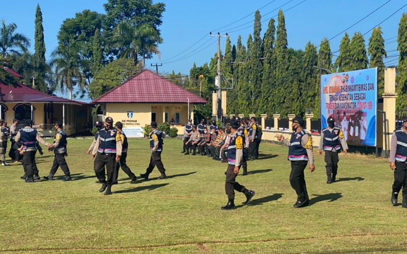 Tim tenaga tracer dan vaksinator Covid 19 Kabupaten Bengkulu Utara, Provinsi Bengkulu, ikuti apel gabungan di halaman Mapolres setempat, Kamis (11/2/2021).