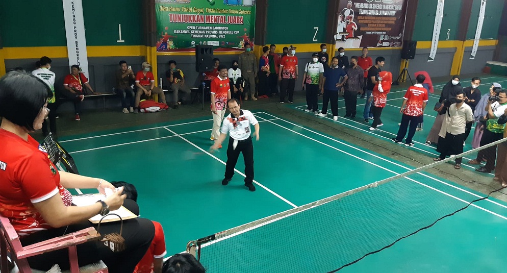 Bengkulu, Siberindo.co – Open Turnaman Badminton Kepala Kantor Wilayah (Kakanwil) Kementerian Agama (Kemenag) Cup Tingkat Nasional 2022, dalam rangka memeriahkan Hari Amal Bhakti (HAB) ke-76 resmi bergulir. Sebanyak 102 peserta mulai tempur habis-habisan memperebutkan piala Kakanwil dan hadiah puluhan juta rupiah.