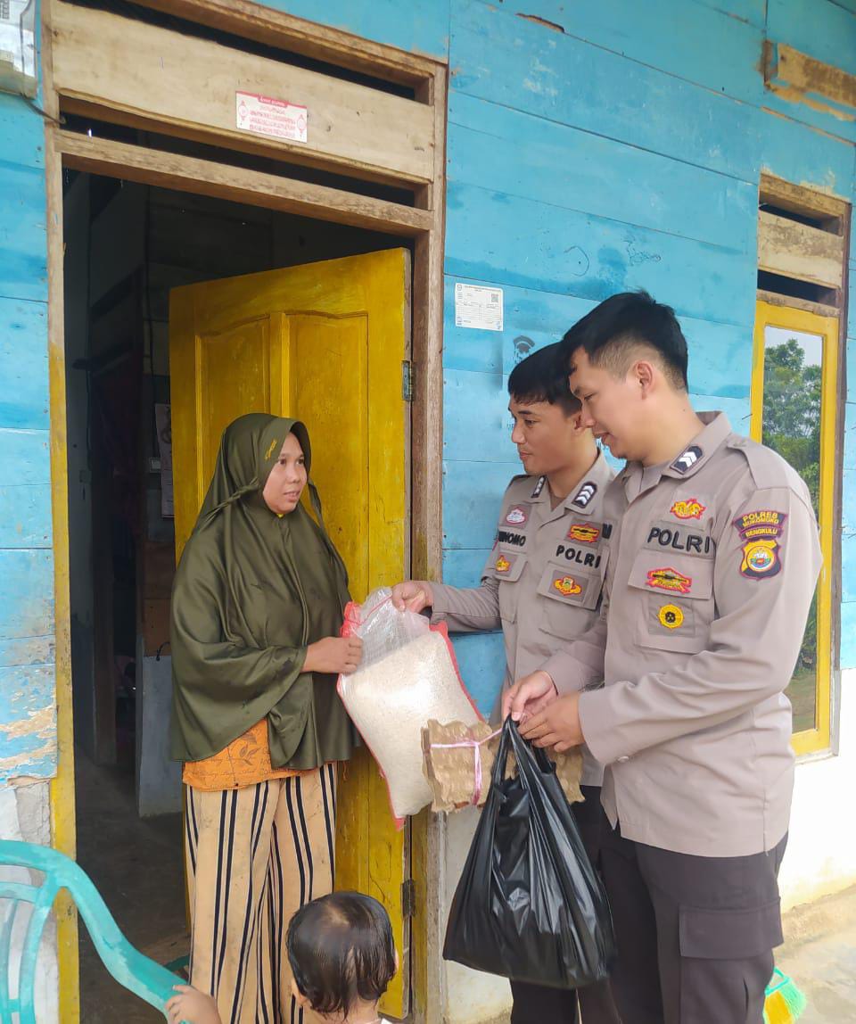 Mukomuko – Polres Mukomuko Polda Bengkulu kembali menyalurkan bantuan sosial (Bansos) berupa paket sembako kepada warga yang kurang mampu. Masing masing paket sembako berisi Beras 10 kg, 1 bungkus teh, 1/5 kg gula pasir, 1 kaleng sarden, 1 liter minyak goreng, 1 bungkus kopi merk seribu satu, 2 bungkus masako, 1 botol kecap, 1/2 karpet telur yang diberikan kepada 10 kepala keluarga (kk) di Desa Tirta Mulya SP 5 Kecamatan Air Manjunto, Sabtu (11/02/2023).