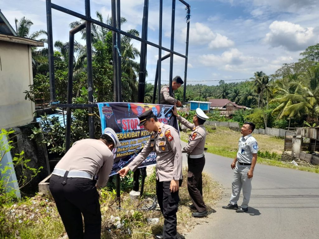 Bengkulu Utara – Polsek Giri Mulya Polres Bengkulu Utara Polda Bengkulu bersama Satlantas Polres Bengkulu Utara dan Jasa Raharja Bengkulu Utara melaksanakan pemasangan Spanduk imbauan “STOP BALAP LIAR” di Simpang 4 Desa Giri Mulya Kecamatan Giri Mulya Kab Bengkulu Utara, Kamis (09/03/2023).