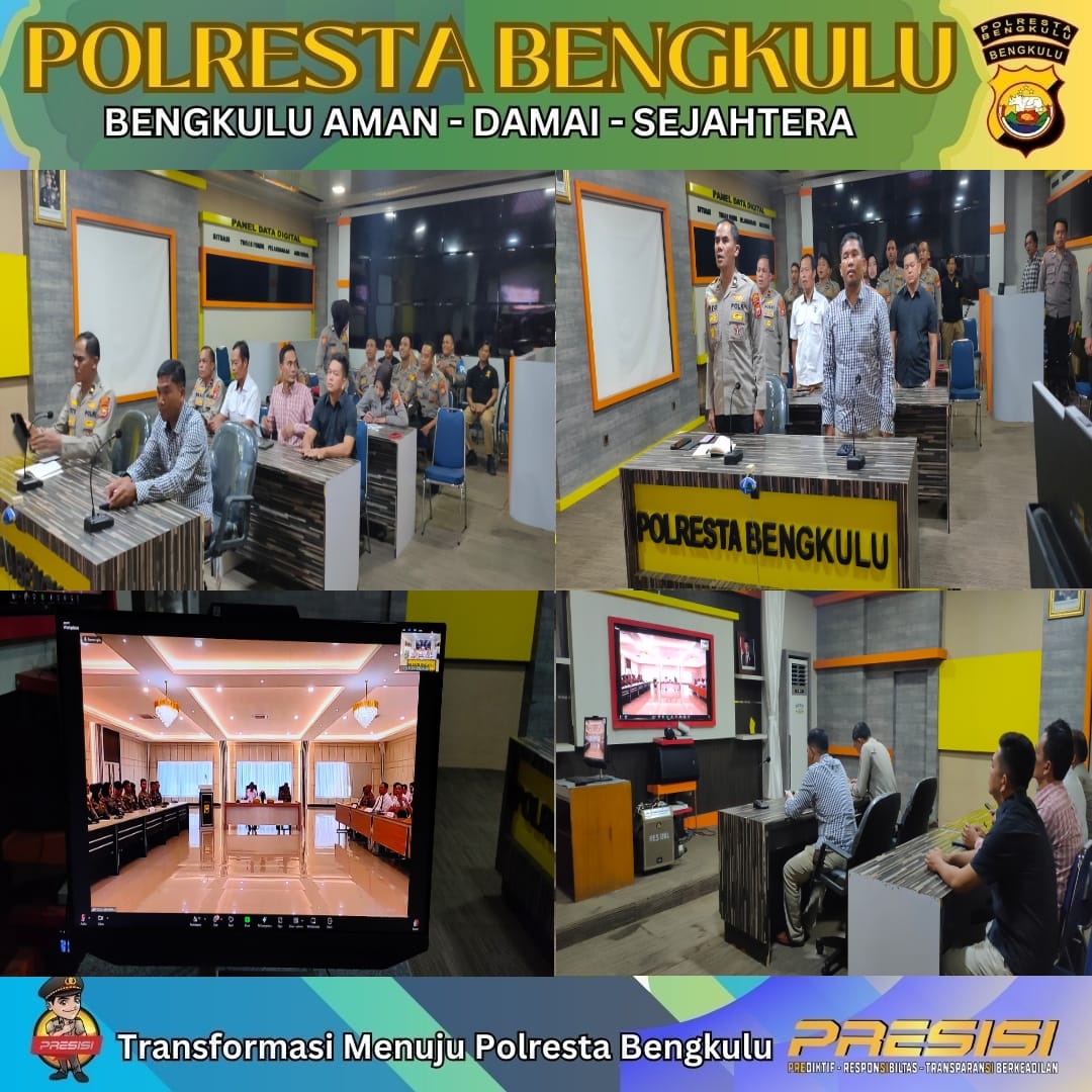 Bengkulu – Polresta Bengkulu menggelar Zoom Meeting Latihan Pra Operasi (Latpraops) Pekat Nala I Tahun 2025 pada Selasa (11/3/2025) di Ruang CC Polresta Bengkulu. Kegiatan ini bertujuan untuk meningkatkan kesiapan dalam operasi penertiban penyakit masyarakat (pekat) agar dapat berjalan lebih efektif dan optimal.