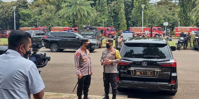 Kapolri bersama pejabat Mabes Polri lainnya tiba di Pos Pengamanan sekitar pukul 12.44 WIB. Kapolda Metro Jaya Irjen. Pol. Dr. Drs. H. Mohammad Fadil Imran, M.Si., menyambut langsung kehadiran Jenderal Polisi Drs. Listyo Sigit Prabowo, M.Si.