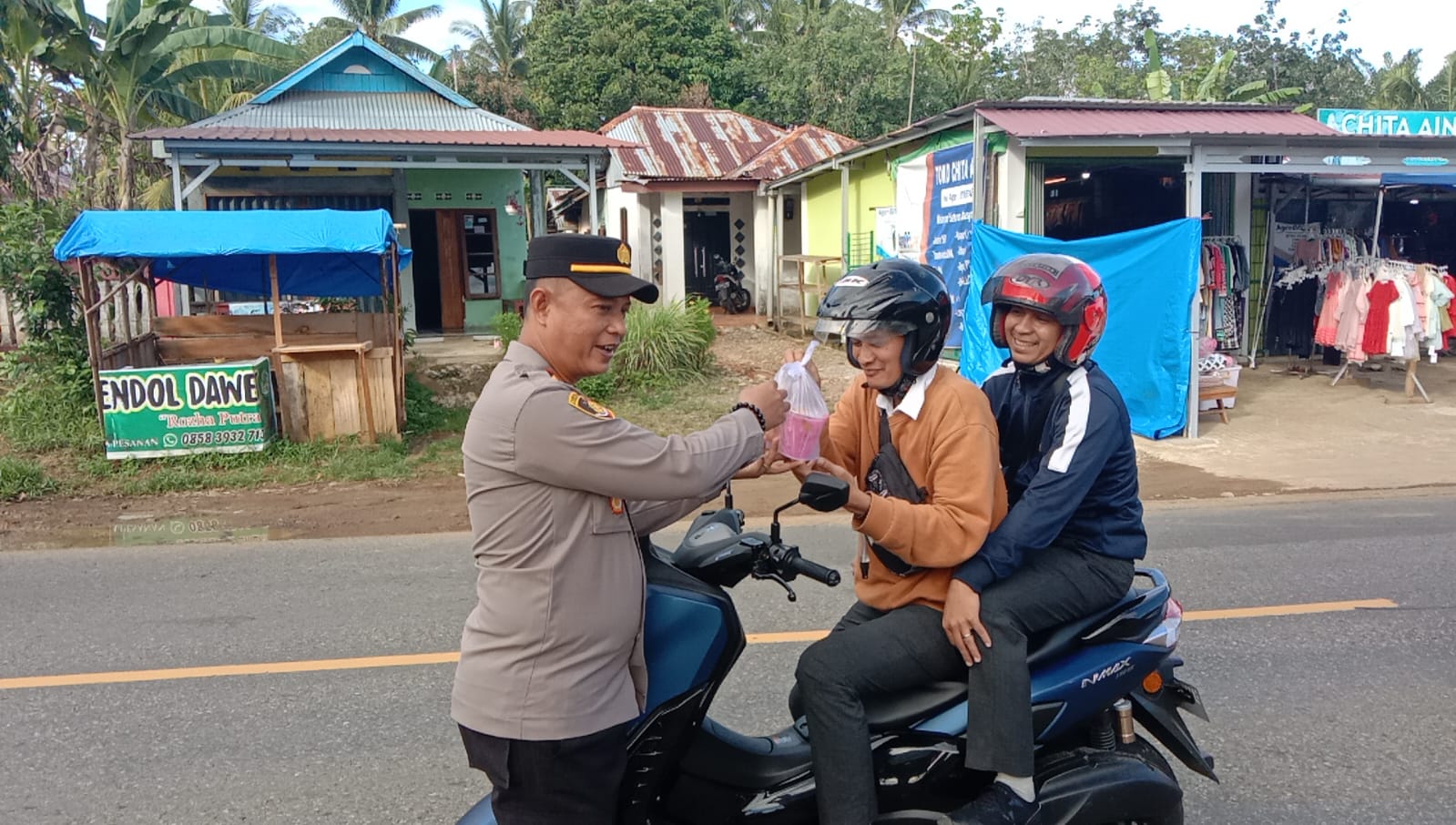 “Mohon jika mengendarai sepeda motor agar jangan lupa untuk memakai helm dan memakai sabuk pengaman untuk menjaga keselamatan diri dalam berkendara,” ujar Kapolsek Sukaraja Iptu Prengki Sirait.