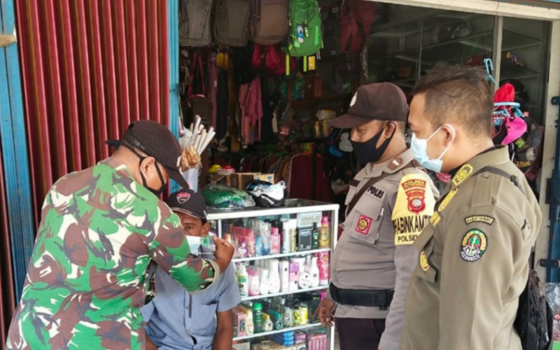 Selain melakukan pembagian masker juga memberikan himbauan serta edukasi protokol kesehatan diantaranya kewajiban menggunakan masker, mencuci tangan, menjaga jarak, menjauhi kerumunan dan mengurangi mobilitas,” jelasnya.