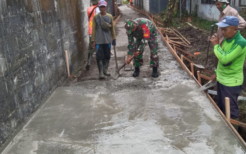 Kerja Bakti TNI-Rakyat, Babinsa Palangka Gotong Royong Pengecoran Jalan