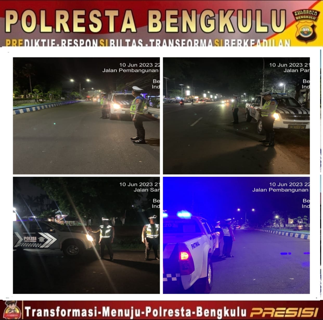 Kota Bengkulu – Sat Lantas Polresta Bengkulu Polda Bengkulu melaksanakan kegiatan patroli blue light antisipasi 3C sekaligus antisipasi balap liar di wilayah hukum Polresta Bengkulu. Sabtu (10/06/2023) malam .